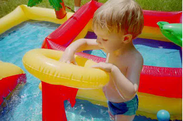| Playing in the little pool at Grandma's