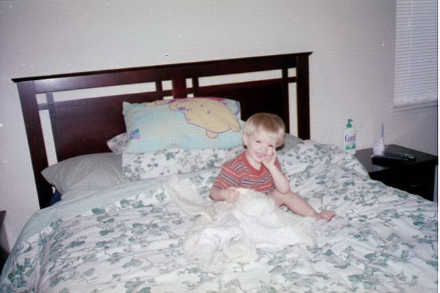 | Playing in Mommy and Daddy's bed. |